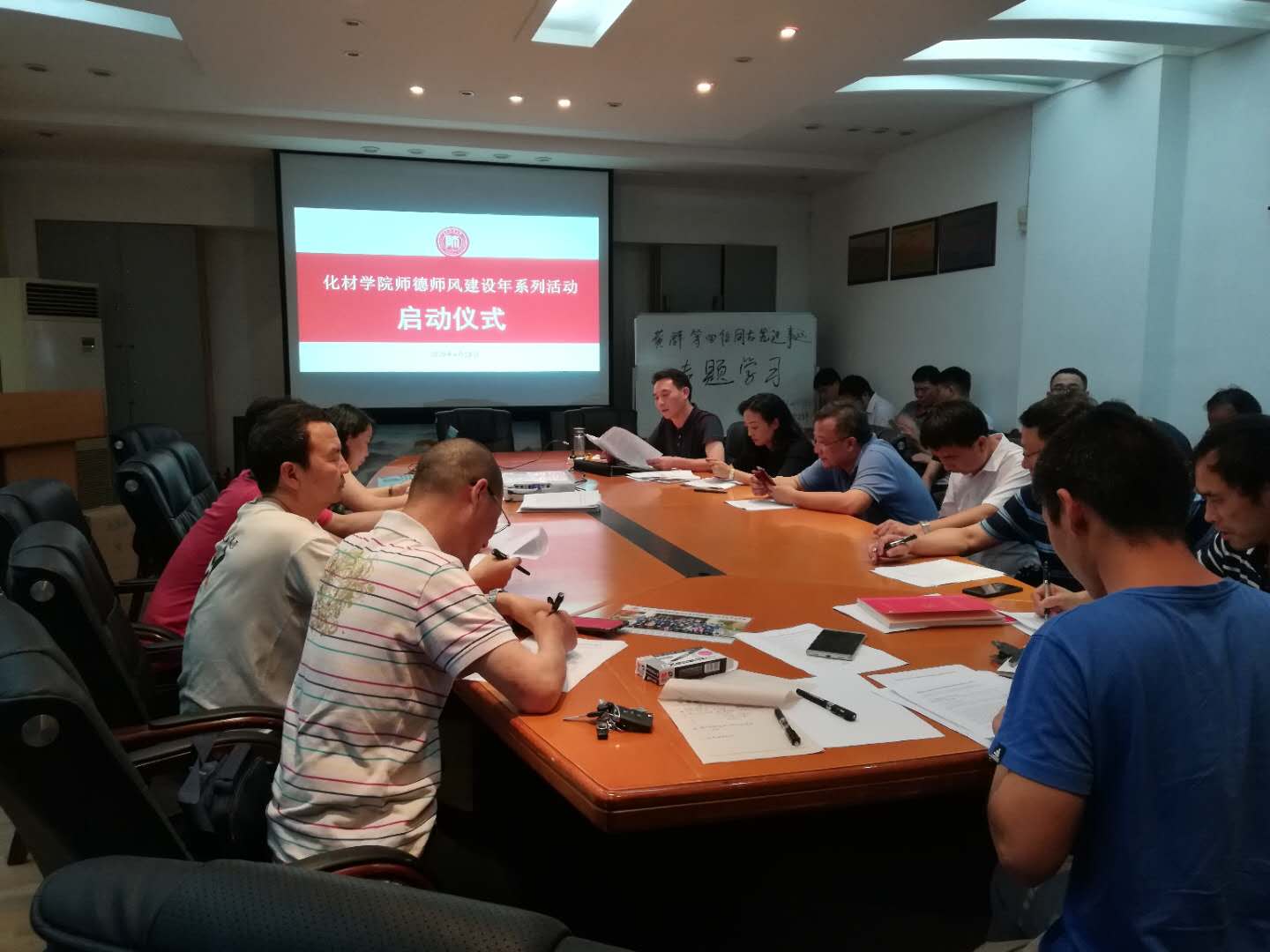 为了贯彻落实党的十九大精神及习近平新时代中国特色社会主义思想、全国全省教育大会精神、《中共中央、国务院关于全面深化新时代教师队伍建设改革的意见》、《中共贵州省委、贵州省人民政府印发关于全面深化新时代教师队伍建设改革的实施意见》等文件精神,6月20日,公司在宝山校区会议室举行了“明师道、铸师魂、讲师德、立师表”师德师风建设年活动启动会暨专题党课。会议由2026年世界杯官网党委书记路世传主持,全院教职工参加会议。