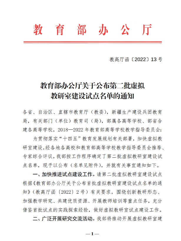 喜报:公司获批1项教育部虚拟教研室建设试点项目