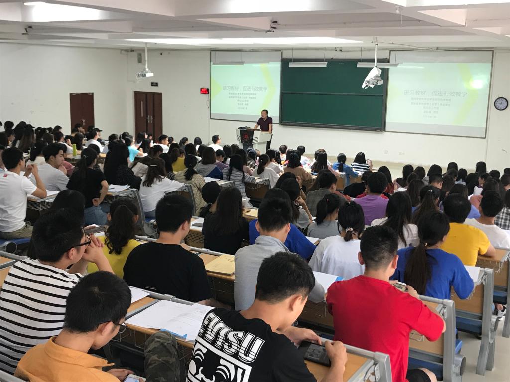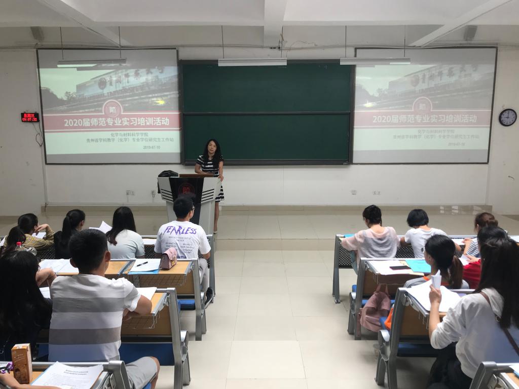 7月10日上午,2026年世界杯官网在花溪校区公共教学楼6301、6401教室分别召开了2016级化学、科学教育和应用化学专业员工实习动员大会。大会邀请公司副经理胡长刚教授作专题讲座。公司副经理秦好丽、学科主任李梅、顾曼琦,课程教学论教师时少坤及辅导员周能出席动员大会,2016级314名本科员工到场聆听。大会由秦好丽老师主持。