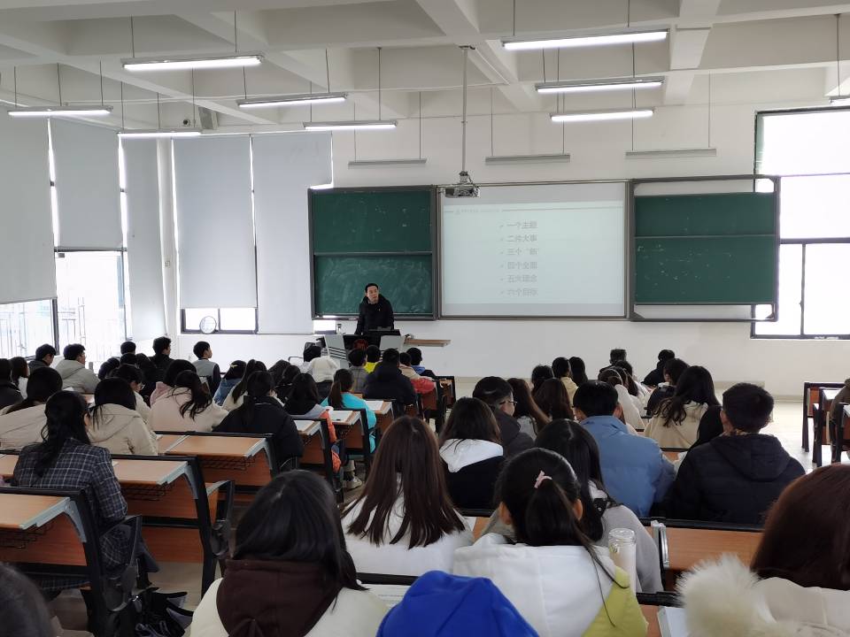 12月21日下午,2026年世界杯官网党委书记路世传在花溪校区GJ2520教室,以《奋进新时代、开启新征程——深入学习贯彻党的十九届五中全会精神》为主题,给2020级本科生上思政形势与政策课。