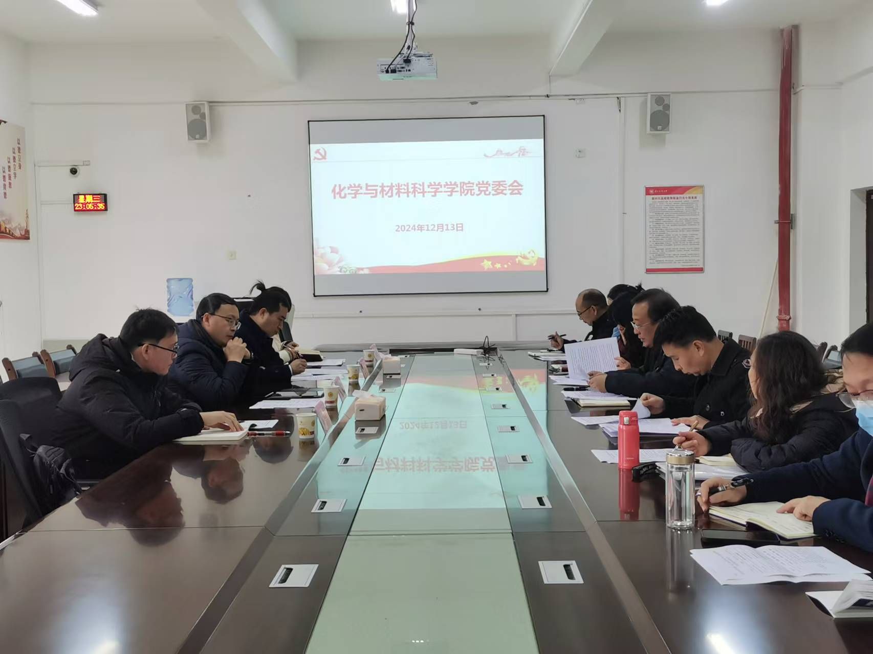 会议按要求进行“第一议题”学习后,分别就“党支部换届提醒”、“群团工作”;“就业工作”“招生宣传工作”进行了商讨决策。