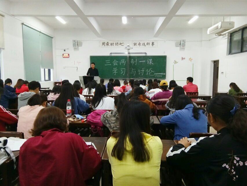 谭杨向大家介绍了“三会两制一课”的基本内涵及意义。“三会两制一课”即团员支部大会、支委会、民主生活会;“两制”即团员教育评议工作制度、年度团籍注册制度;“一课”则指团课。这项工作是团组织对团员进行思想政治教育和团员自我教育的具体形式,是加强团的思想建设的重要途径,是保证基层团组织正常进行团组织生活、开展团的活动和工作的基本要求。在活动交流与讨论环节,同学们积极畅谈自己入团时和入团后的感想并发表对“三会两制一课"的看法。