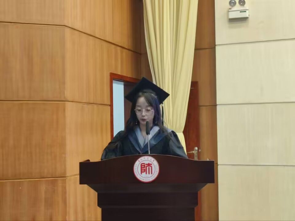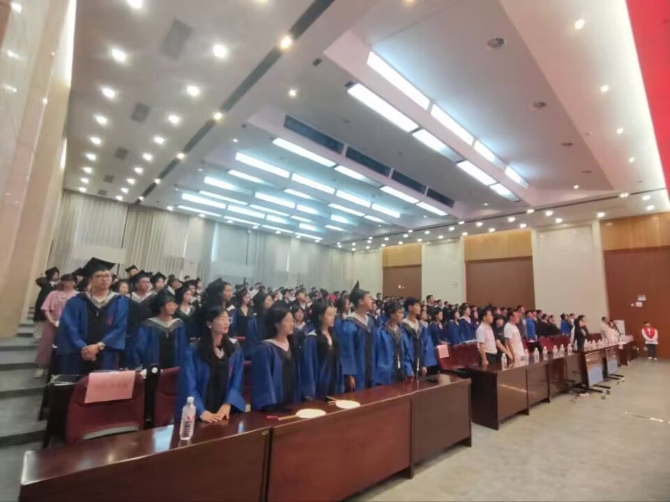 教师代表梁隆超为毕业生们送上了真挚的祝愿,送给毕业生三点建议:一是既要仰望星空,也要脚踏实地;二是求真和做真人,怀抱感恩之心;三是永远做善良真诚的人。