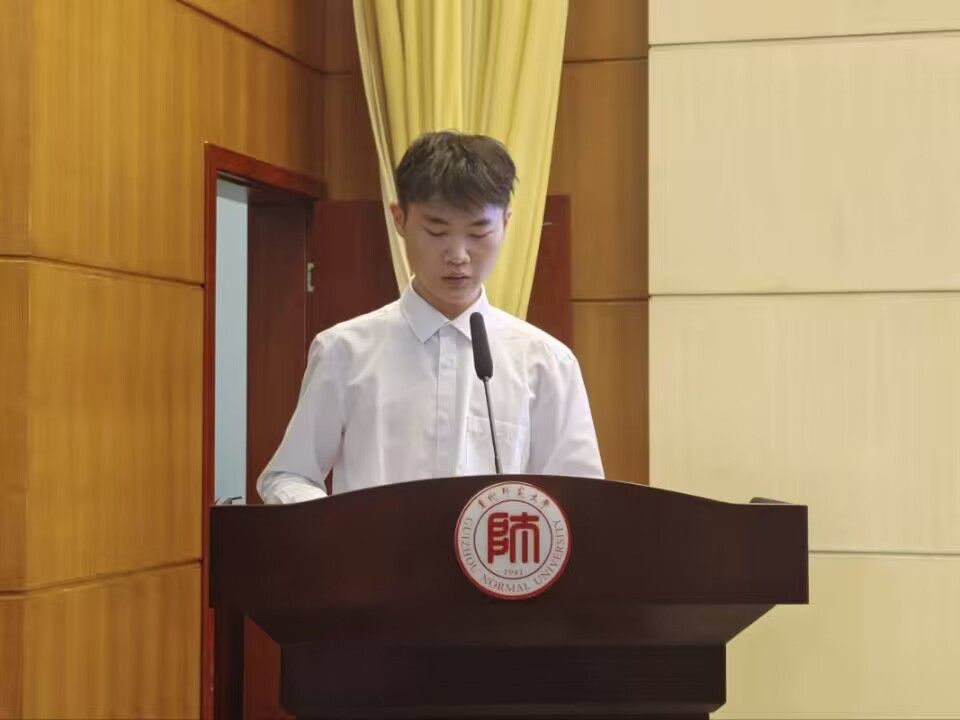 在校生代表夏鹏代表全体在校生祝贺学长学姐顺利毕业,将向学长学姐们看齐,拼搏奋进,勇敢追逐梦想,书写精彩篇章。