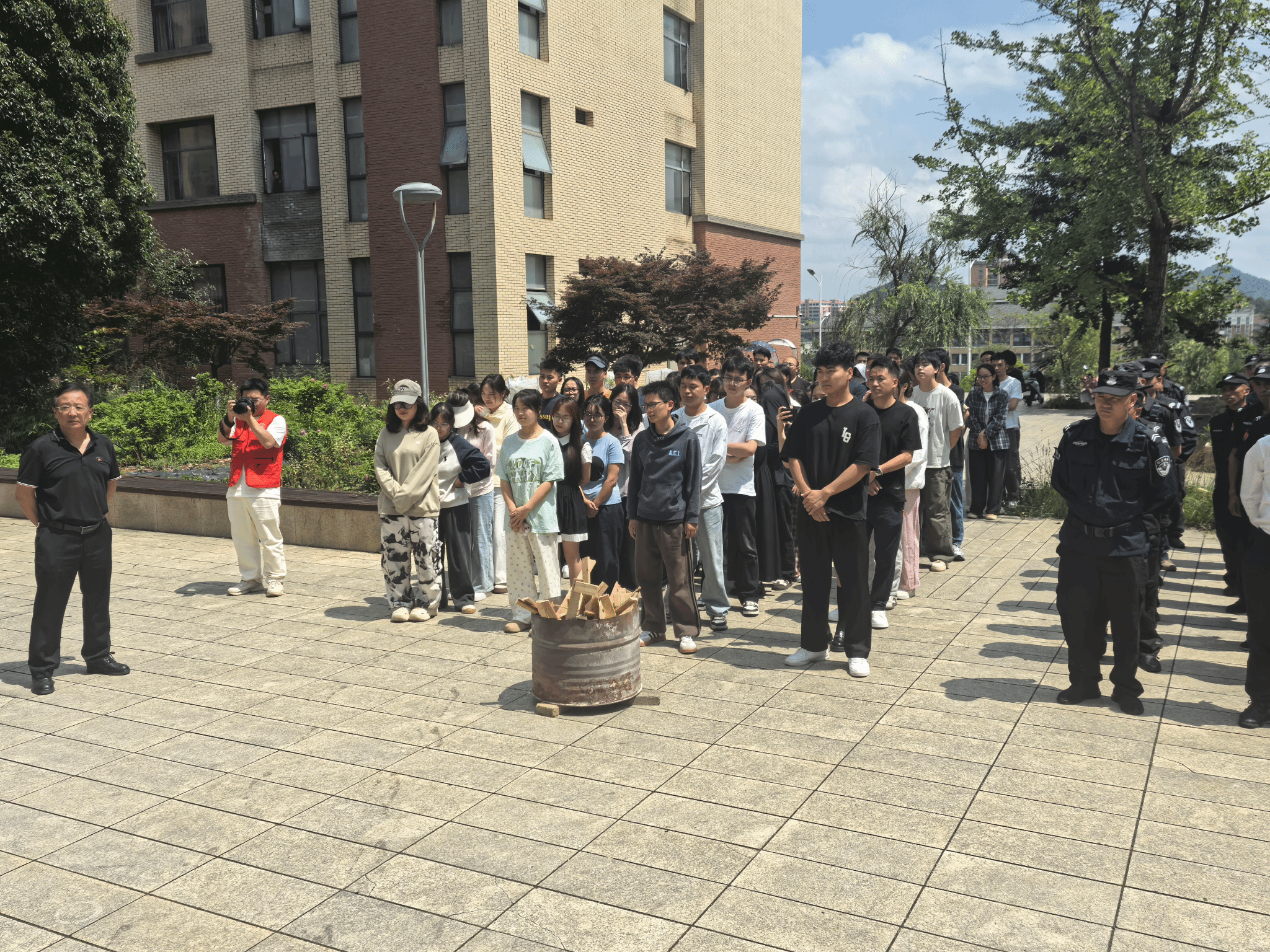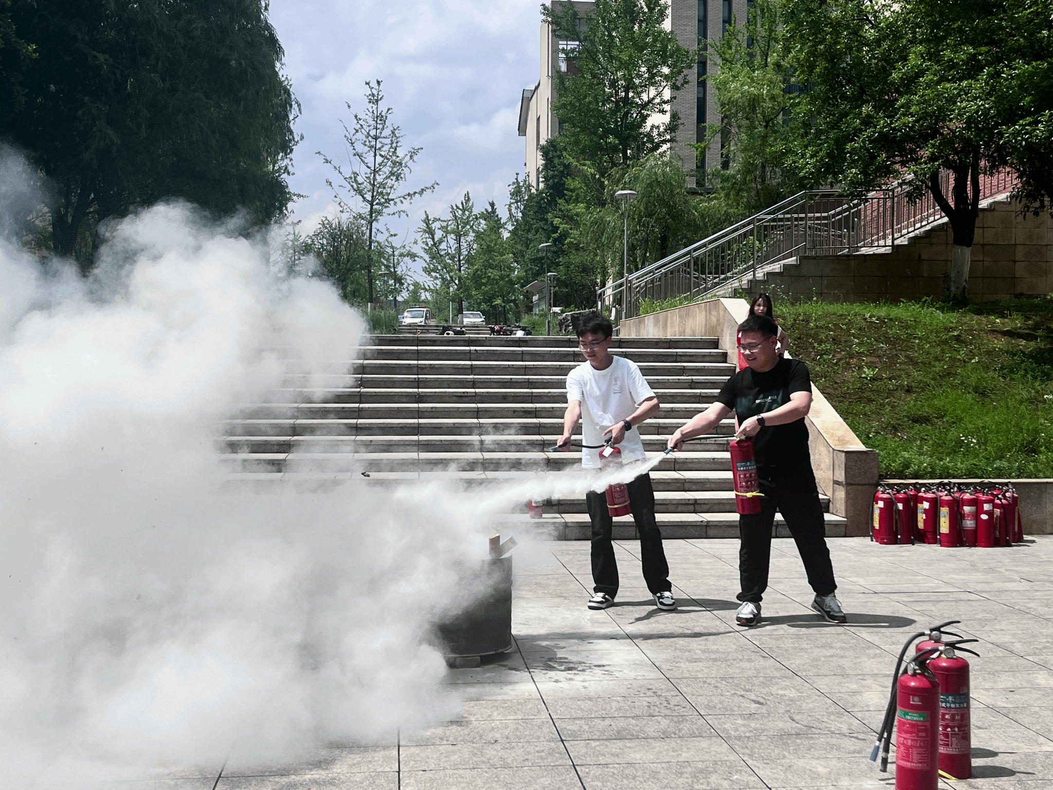 在实践环节中,全体研究生在保卫处老师的指导下,严格按照规范步骤,顺利地完成了安全演练活动,切实掌握了灭火技能。现场气氛紧张有序,同学们纷纷表示,此次演练不仅强化了自身的消防安全意识,更提高了面对突发火情时的应急处置能力。