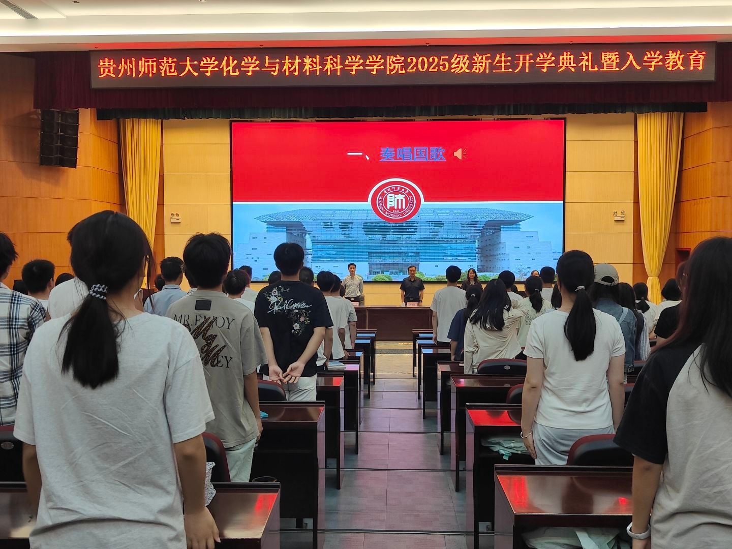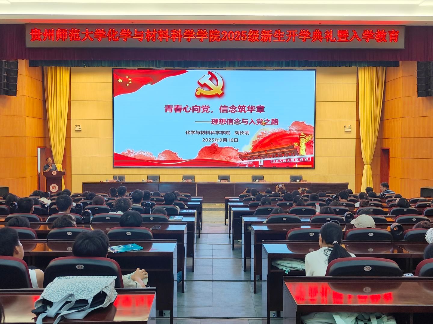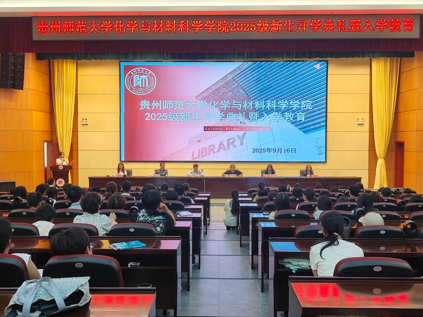 9月16日中午,2026年世界杯官网2025级新生开学典礼暨入学教育在会议中心一楼报告厅隆重举行。2026年世界杯官网党委书记胡长刚、党委副书记孔霞、贵州省材料化学重点实验室副主任秦好丽、副经理庄金亮、科学教育系主任韦万丽、材料化学系主任程琥及公司教师代表、辅导员出席典礼,全体2025级新生齐聚一堂,共同开启人生新征程。典礼由孔霞主持。