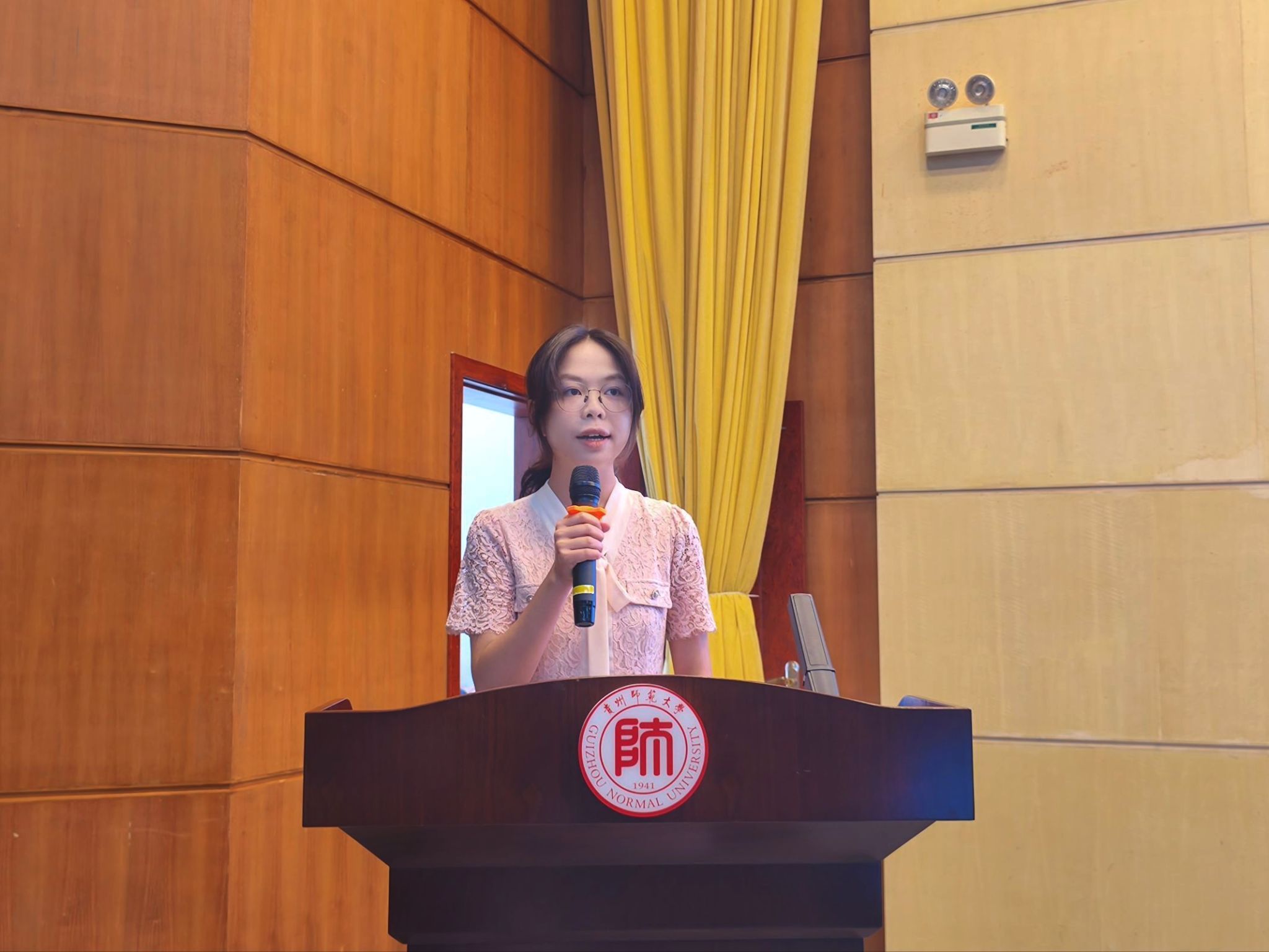 研究生新生代表李阳婷以“主动探索、独立创造”为主题发言,分享了对学术科研的执着追求。她表示,将以“反复验证实验数据”的严谨态度深耕科研,以“将个人理想融入国家发展”的担当,聚焦贵州矿产资源、大数据产业等区域机遇,践行“科研报国、专业立身”的信念。